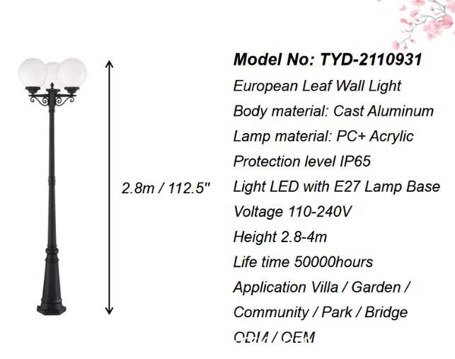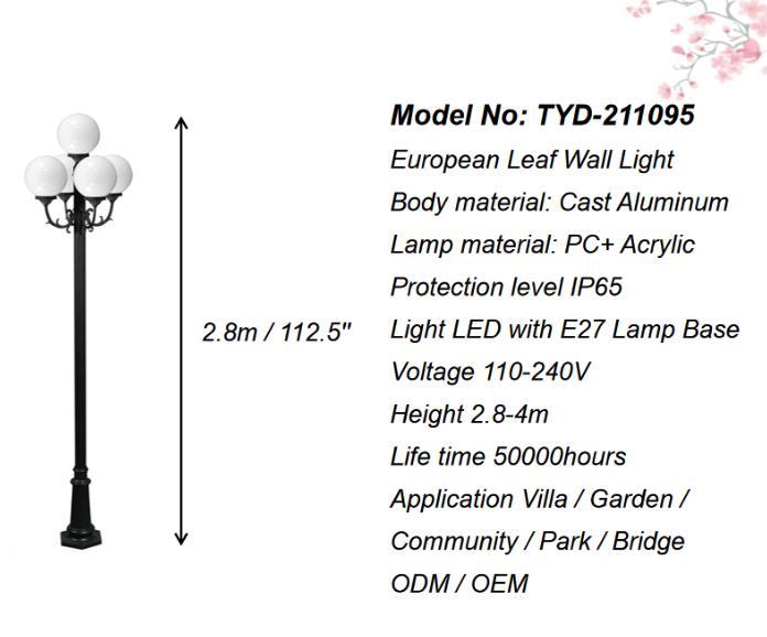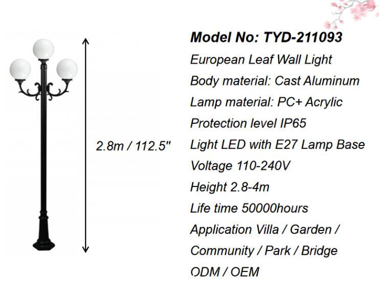 Lampa gorm bán 3 méadar, lampa 5-liathróid, lampa comhphobail trasdula gairdín lasmuigh
